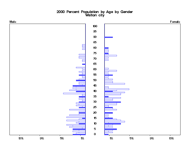 | Walton city 2000 Population by Age by Gender | |||||