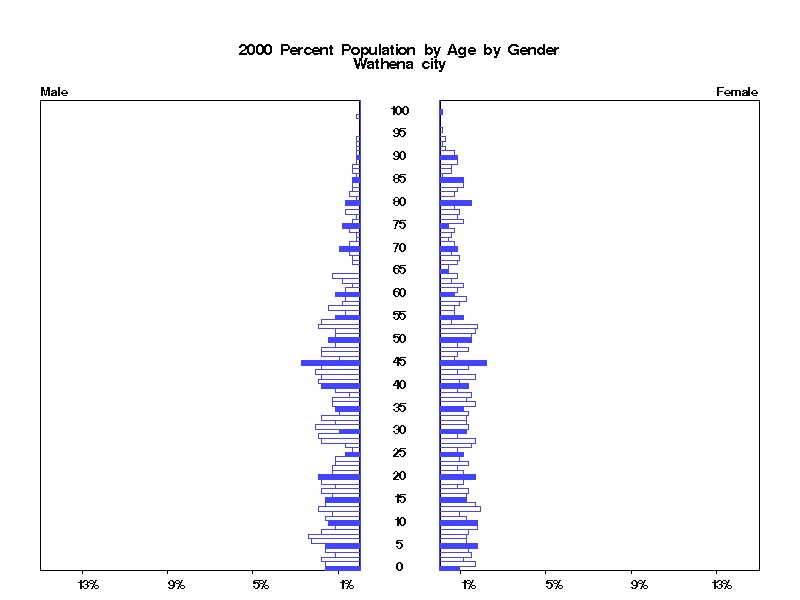 | Wathena city 2000 Population by Age by Gender | |||||