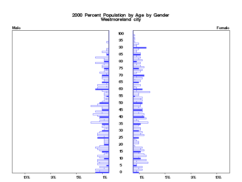 | Westmoreland city 2000 Population by Age by Gender | |||||
