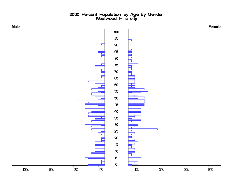 | Westwood Hills city 2000 Population by Age by Gender | |||||