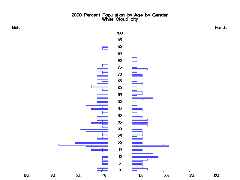 | White Cloud city 2000 Population by Age by Gender | |||||