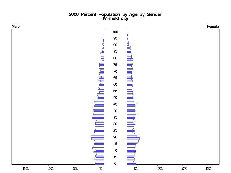 | Winfield city 2000 Population by Age by Gender | |||||