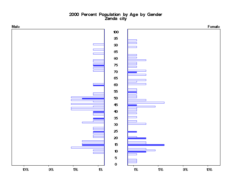 | Zenda city 2000 Population by Age by Gender | |||||
